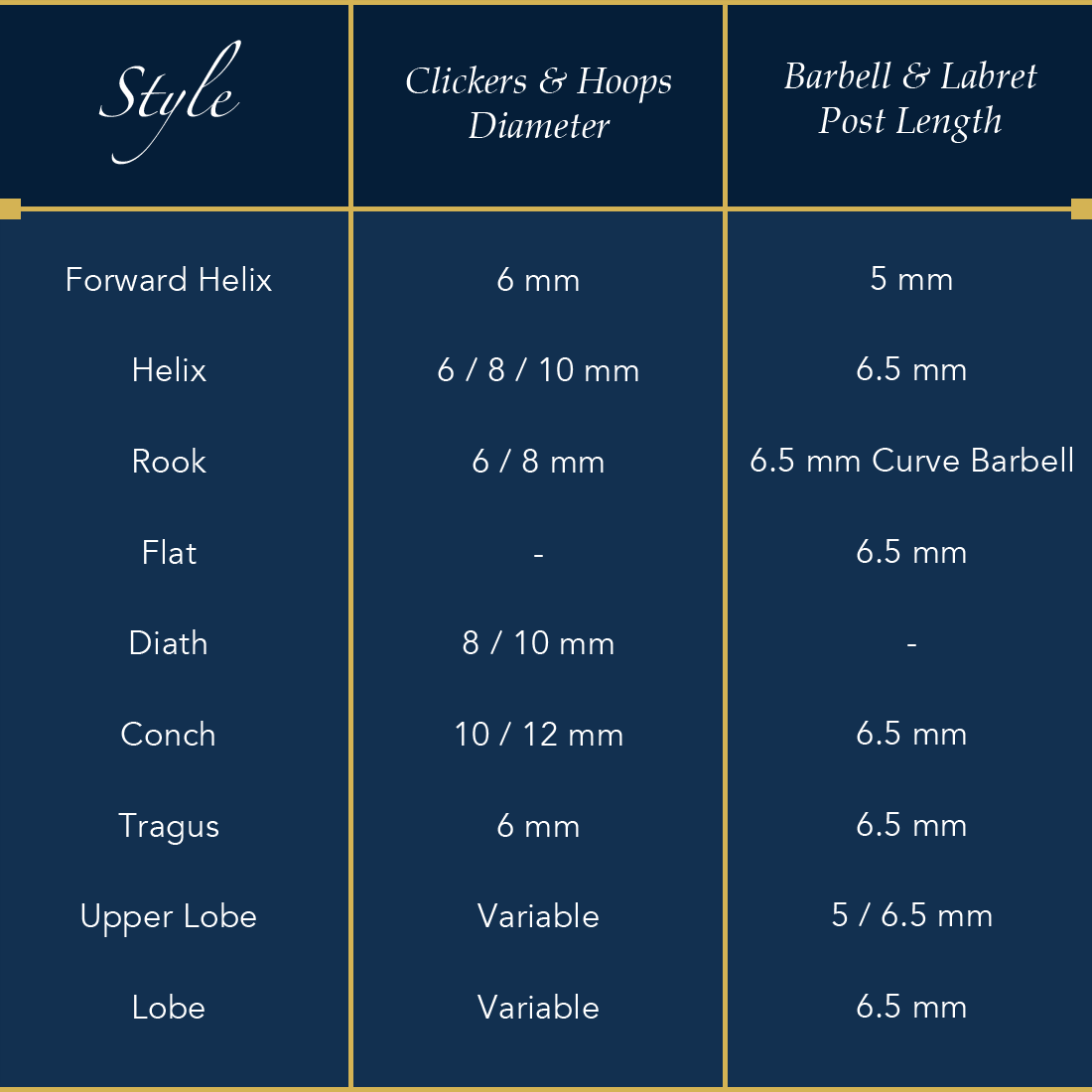 There are many different varieties of earring designs, for you to choose from. Below we have created guides, to help you with your purchase.