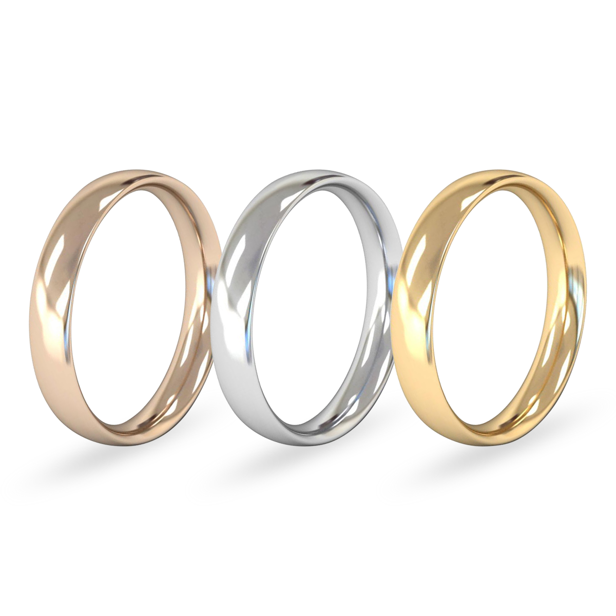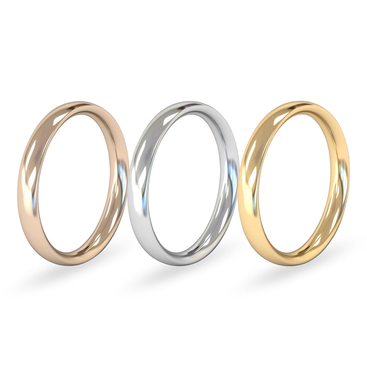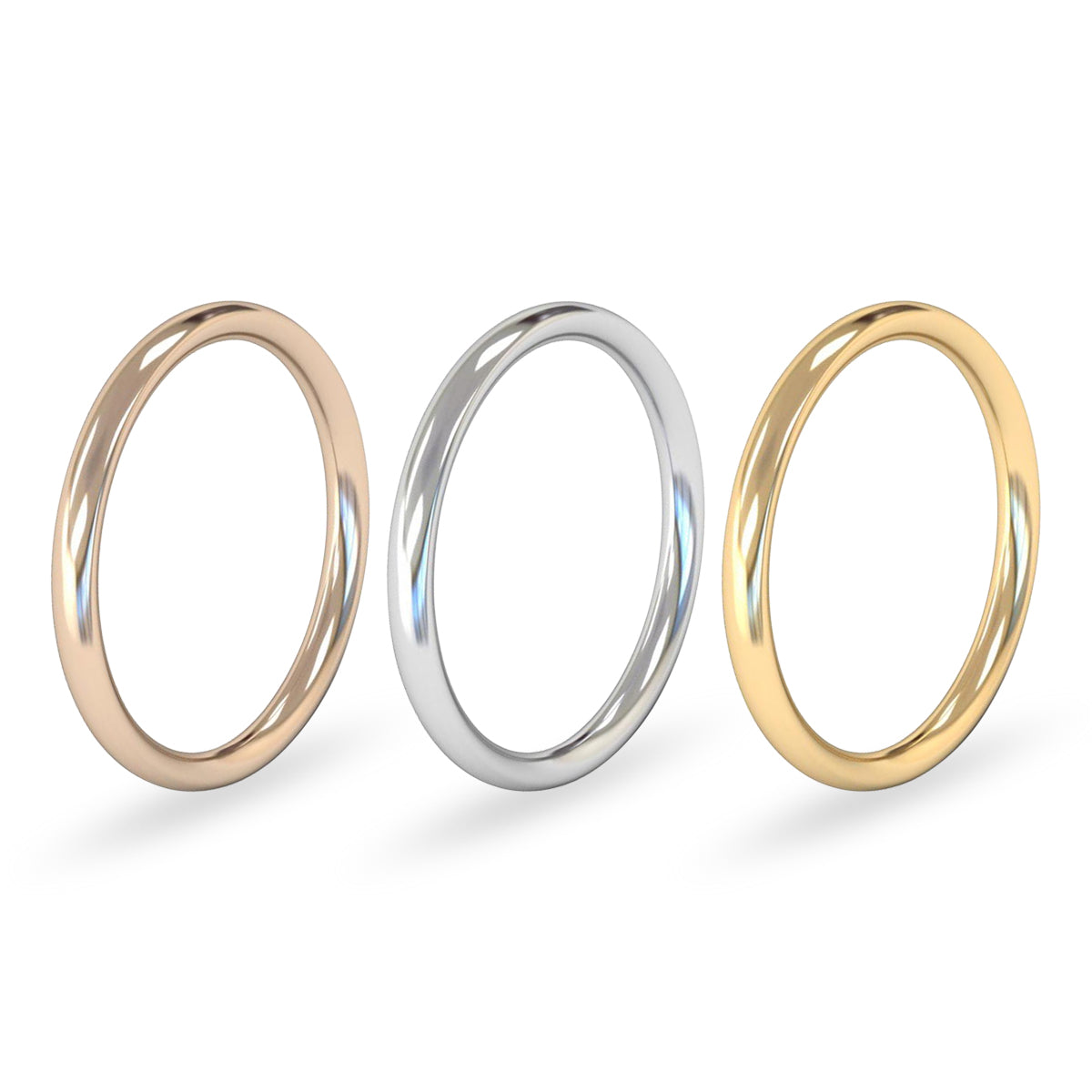 Classically timeless, the streamlined curved contours of the smooth rounded band, is perfect for those looking for an elegant and sophisticated style. The cross-section of the wedding band shows an oval profile. With curved contours, on both the external and internal surfaces. As well as the curved convex sides of the band, all the features contribute to providing a supremely comfortable fit.