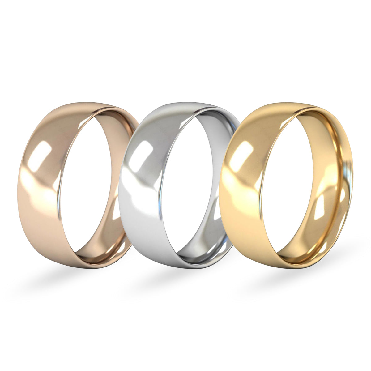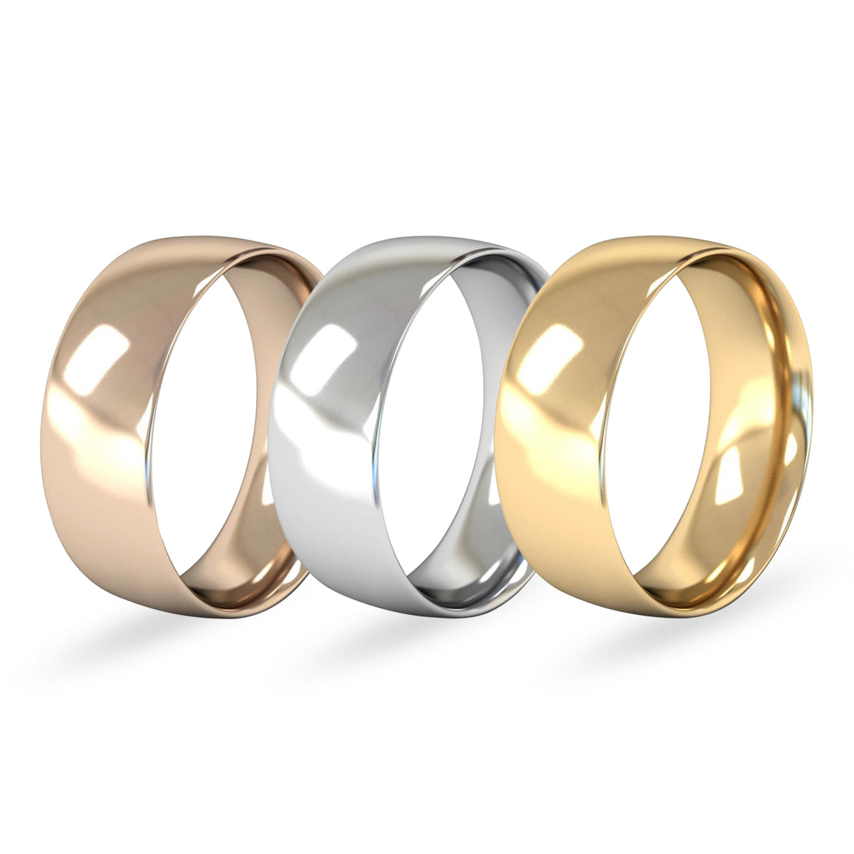 Using 100% recycled metals, the traditional court wedding band can be manufactured in a variety of different metals, widths and weights. If you would like to add a personal message, special date or name into your ring, engraving is available for these wedding bands.